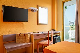 Die Zimmer sind mit allen nötigen Annehmlichkeiten für einen chilligen Urlaub ausgestattet: Eigener Balkon, Bad mit WC, Klimaanlage, TV, Telefon und Mietsafe. Tagsüber habt ihr die Wahl zwischen Pool und Sandstrand, denn dieser ist nur 100m entfernt.
